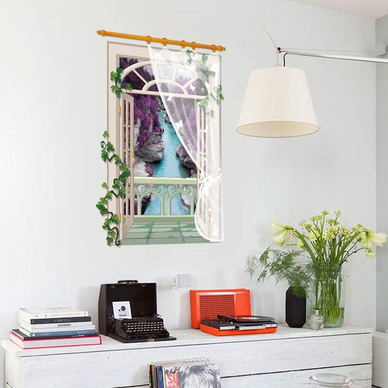 Share on WhatsApp Windows Lavender 3D wall sticker PVC removable waterproof creative sticker, bedroom living room fresco SK9022B