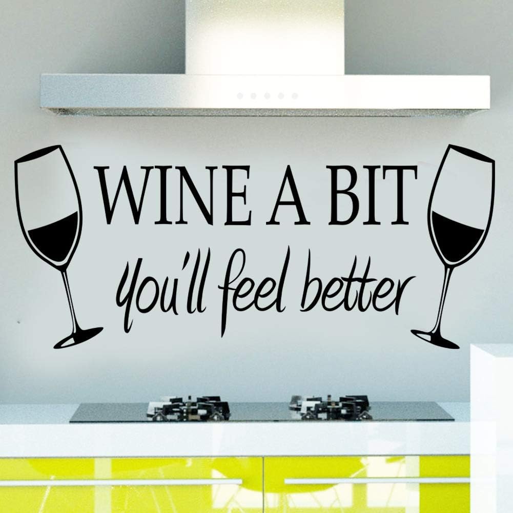 Share on WhatsApp Wine a Bit You'll Feel Better Quote Letter Wall Sticker Vinyl Wall Decals Home Arts Removable Kitchen Dining Room Wall Decal Vinyl Home Décor (Black...