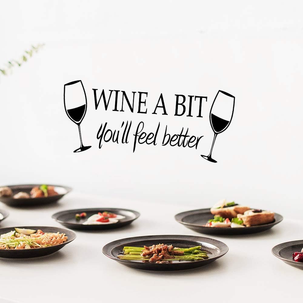 Wine a Bit You'll Feel Better Quote Letter Wall Sticker Vinyl Wall Decals Home Arts Removable Kitchen Dining Room Wall Decal Vinyl Home Décor (Black...