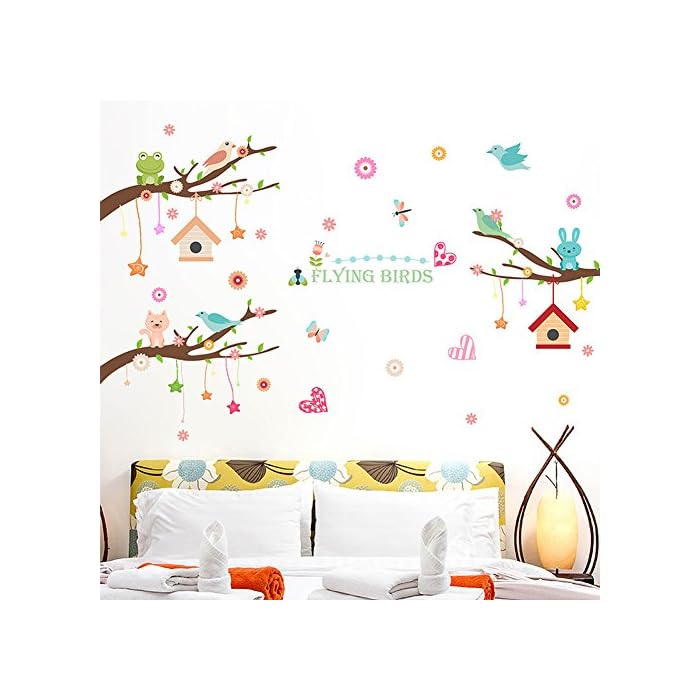 Share on WhatsApp XL8245 Wallpark Cartoon Cute Rabbit Cat Bird Creative Stars House Pendent Tree Branch Removable Wall Sticker