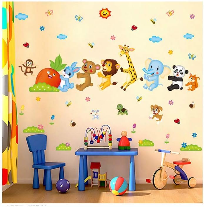Share on WhatsApp Xl8281 Animal Pull Radish Pattern Cartoon Wall Stickers Living Room Bedroom Bedside Kindergarten Classroom Children Room