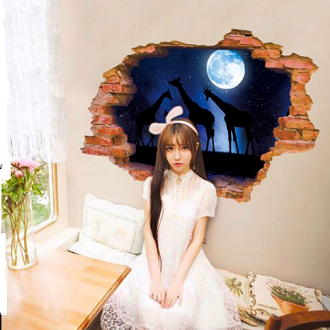 - Style:3D stickers Moon Starry Giraffe broken wall stickers